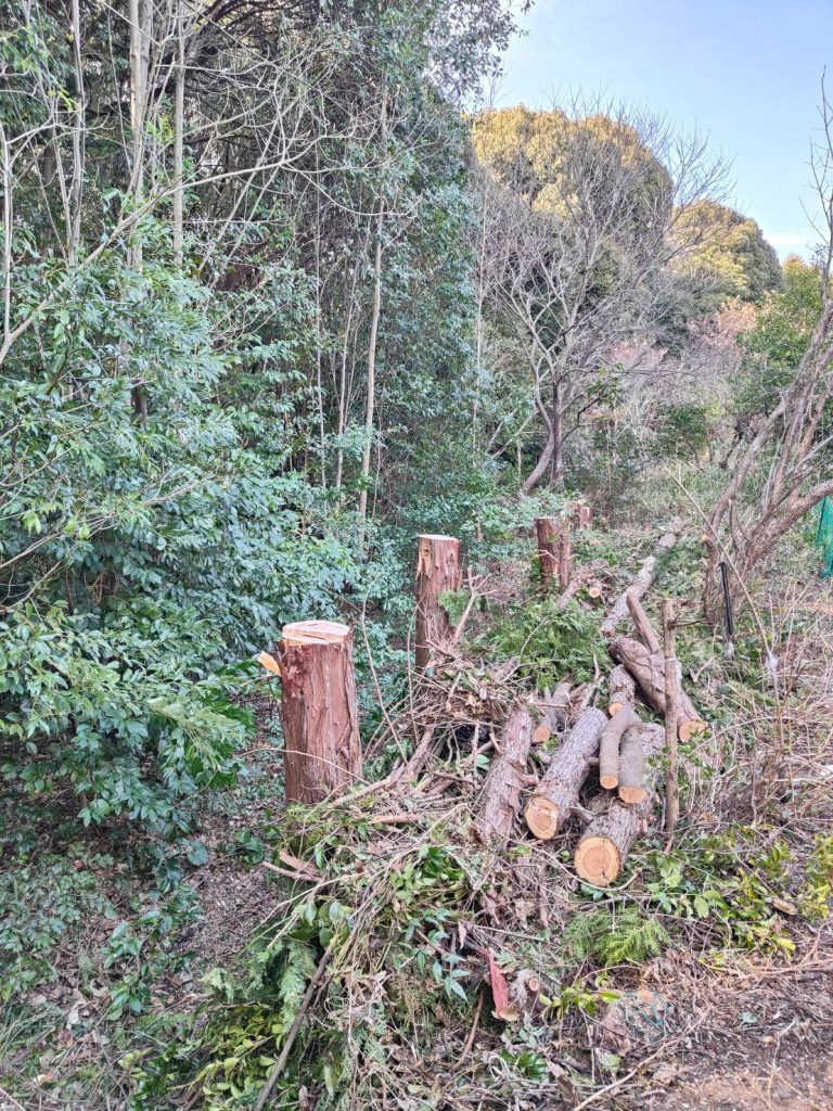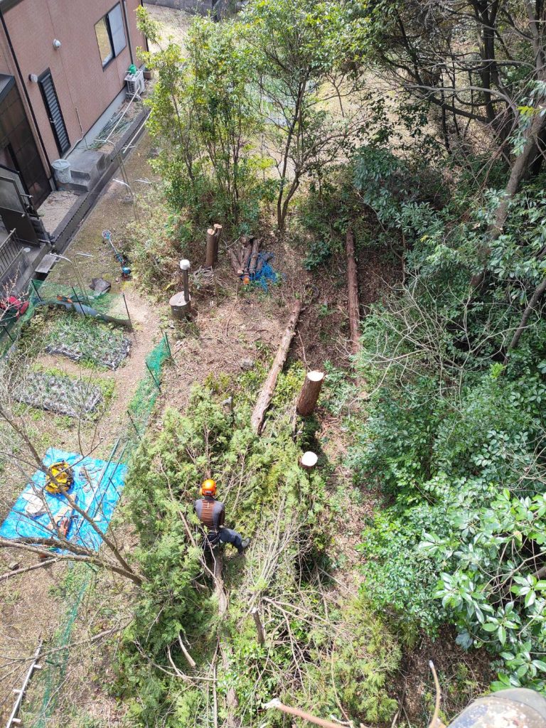 依頼主のお父様が「庭に門を作りたい」という想いで植えられた、思い出の木々の伐採作業を行いました。