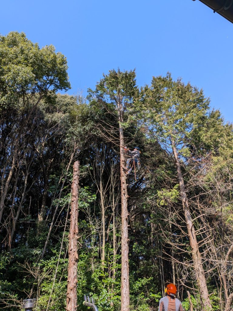 檜6本を含む計8本の伐採を、2名で1日かけて安全に完了しました。